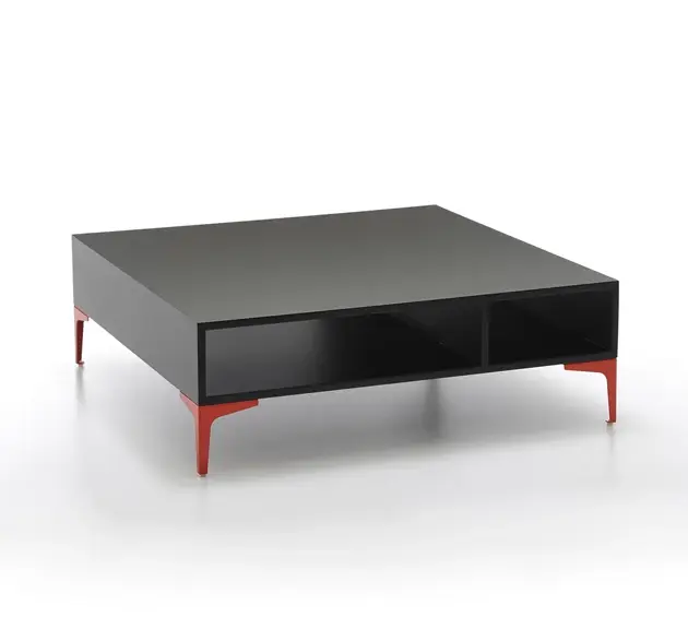 Cara coffee tables, metal, and wooden legs as Cara armchair, with lacquered tops which are perfect to be combined with deberenn chairs, armchairs, and sofas. Its box type sides open or non-open design in square or rectangular versions that seems to be just waiting to show off its usefulness in daily use.
