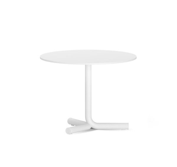 The Jit table collection was created with simple yet functional shapes in mind. A generously sized steel tube frame is interpenetrated with an additional curved section, which seems to rest gently on itself.