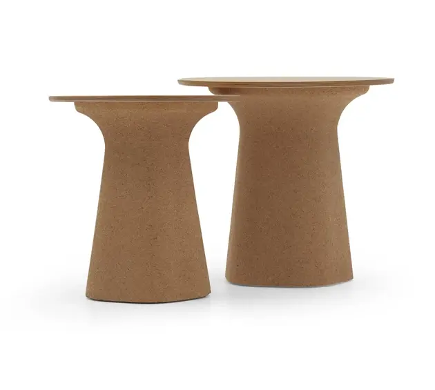 Korky, designed by David Fox, is a stylish and sustainable coffee table with a body made from cork. Its natural texture adds warmth and character, while its lightweight yet durable design ensures versatility. Available in two sizes, Korky adapts to different spaces and needs, making it a perfect blend of aesthetics and functionality.