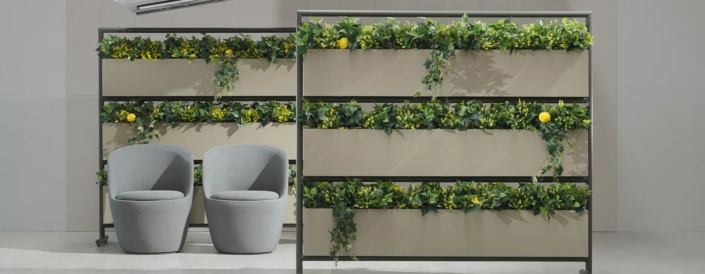 Elements gives a nice view to your offices, lobbies, waiting areas while separating the spaces to give ability to use the spaces more functional and for multi purposes. Grow real plant or display artificial plants in 3 tiers shelves it has. Elements can be painted in desired color from Deberenn RAL color options.