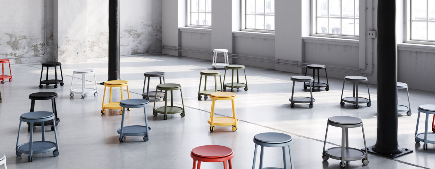 Round&Roll extends Oleg Pugachev’s Round&Round collection by revisiting its dimensions and minimalist look in a playful and functional way. The perfect geometrical shape of the seat is enclosed in a sturdy frame equipped with a convenient storage basket at its base.