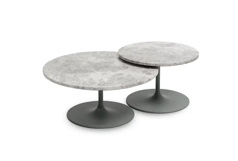 The conical base underneath gives SOLO X the appearance of floating, yet giving a stable placing towards the ground. It offers a useful support top in lounge areas, residential and contract use adding value to the whole space with its refined design. The choice among different materials and colors available for the top and base leaves the imagination free.