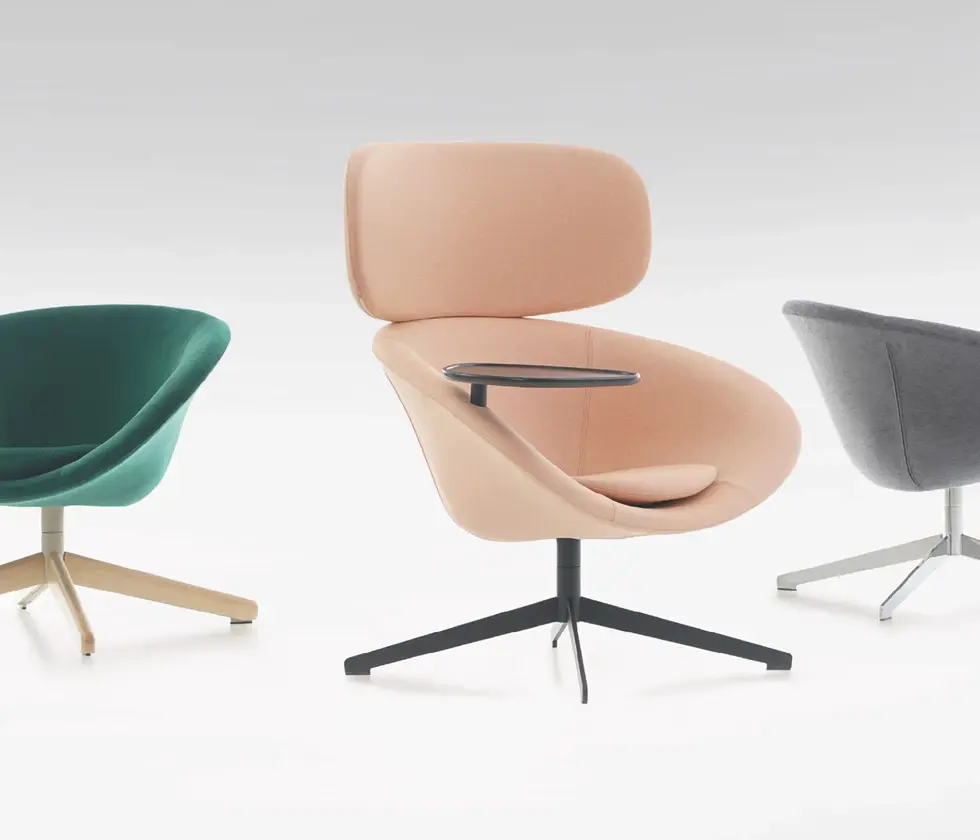 Kuppi offers a comfortable seat thanks to the polyurethane molded foam shell and it’s perfect design proves that it is a long-lasting lounge armchair. And there is a variety of options to choose from, including seating with low or high backs, with or without trays, and wooden or metal base to use both in receptions, break-out areas and even at home. And Kuppi coffee tables are perfectly completing the collection.